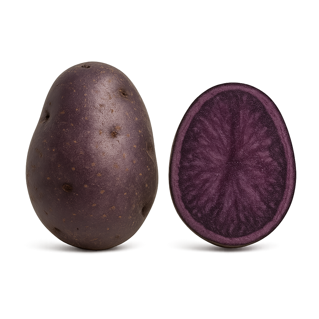 Idealny na spektakularne fioletowe purée, domowe chipsy lub sałatki – zachowuje swój intensywny kolor nawet po ugotowaniu. Jego fioletowy kolor to zasługa antocyjanów (tych samych co w jagodach), co czyni go znacznie zdrowszym od tradycyjnego ziemniaka.Gotuj go w mundurku, aby zatrzymać jak najwięcej witamin i barwnika; przechowuj w ciemnym, chłodnym miejscu (nie w lodówce).